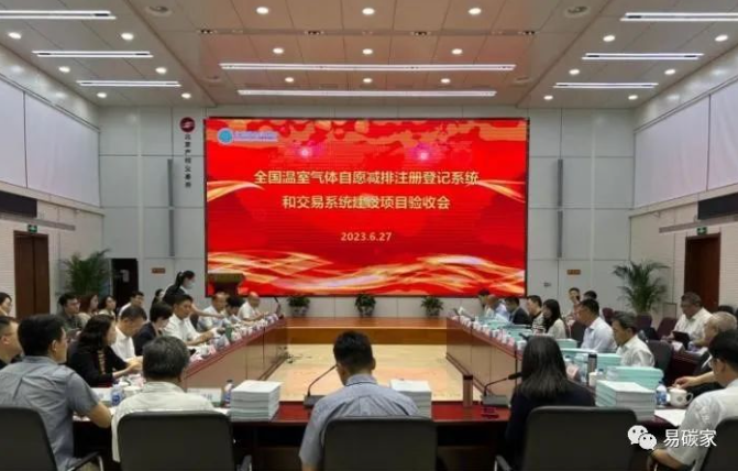 2023年6月27日,全国温室气体自愿减排注册登记系统和交易系统建设项目初步验收会在京召开,生态环境部应对气候变化司副司长逯世泽、国家气候战略中心副主任马爱民、北京市生态环境局应对气候变化处处长明登历、北京国资公司副总经理孙婧等相关部门领导出席会议。中国社科院学部委员潘家华、中国工程院院士柴洪峰,以及来自生态环境部信息中心、清华大学、中国质量认证中心、带路绿色发展国际研究院、北京理工大学、北京金融资产交易所等单位专家参与验收。会议由北京市生态环境局组织,马爱民副主任联合主持系统验收环节,市场部相关负责同志参会。